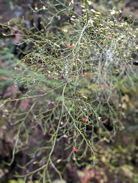 The red huckleberry is a deciduous shrub belonging to the heath family. It can grow from about 3-14 feet tall, and its habitat ranges from southeast Alaska to central California. Generally, the red huckleberry prefers plenty of moisture and tolerates shade well, so it is often found in moist forest habitats, growing on or near decaying wood.